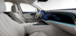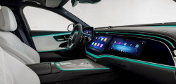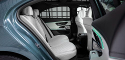 Odată ce W214 face parte din segmentul de lux, germanii au îmbrăcat interiorul în lână de alpaca! Mai rafinat de atât nici nu putea fi. Cu siguranță că Mercedes a luat în calcul și problemele de mediu, respectiv a propus și o serie de elemente realizate din materiale sustenabile. În acest caz, scaunele vin, în standard, îmbrăcate într-o combinație de lână de alpaca și plastic reciclat. Până și bureții scaunelor integrează materiale reciclate.