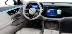 O altă noutate importantă este și a treia iterație a sistemului multimedia MBUX. Acum poți opta și pentru varianta MBUX Superscreen, care adaugă încă un ecran pentru pasagerul din dreapta, pe lângă un ecran pentru instrumentarul de bord și unul central. După cum spuneam și anterior, prin intermediul display-ului central, se va face acces la aplicații ca Tik-Tok, Zoom, Webex și Vivaldi. Vor fi disponibile și jocuri, de exemplu Angry Birds. Iar pe ecranul pasagerului vor putea fi rulate diverse conținuturi video. Și cel mai important! Camera selfie. Noua funcție va putea fi utilizată, pe lângă fotografii și video, pentru conferințe online (atunci când mașina staționează).