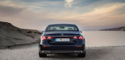 Logoul Mercedes-Benz este acum prezent și pe prizele de aer. La alegere, sedanul german poate fi echipat și cu mânere retractabile, în cazul în care clientul își dorește un "clean look". În spate, observăm stopuri redesenate și care într-un final sunt conectate cu o bandă cromată. Producătorul a instalat și o serie de elemente aerodinamice pe exterior, cu ajutorul cărora germanii au obținut un coeficient Cd de 0.23. Printre cele mai bune din segment.