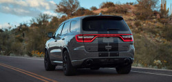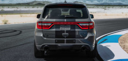 Noul Dodge Durango SRT Hellcat va fi echipat cu bare de protecție redesenate, o capotă care integrează o priză de aer generoasă și cu un splitter nou. La posterior, americanii propun un difuzor nou, lumini unite cu ajutorul unor benzi LED și o aripă mai mare.