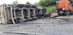 Două camioane s-au tamponat frontal pe traseul Chișinău - Hâncești! Șoferii au decedat