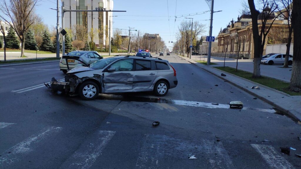 Ambele automobile veneau din sensuri opuse, când șoferul automobilului Mitsubishi, un bărbat în vârstă de 54 de ani, a încercat să vireze la stânga pe strada Serghei Lazo, a izbit violent automobilul Renault.