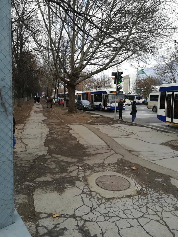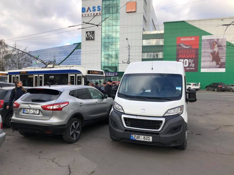 Și mașinile parcate pe banda dreaptă, au rămas blocate, așa cum nu aveau trecere din cauza troleibuselor. Haos total...