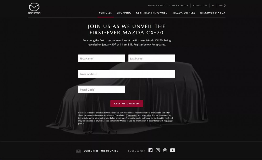 Producătorul nipon de automobile confirmă lansarea noului SUV CX-70. Evenimentul este așteptat pe 30 ianuarie curent.