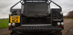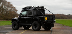Acest exemplar a fost produs în 2010, fiind modificat ulterior de specialiștii de la Bowler, unul din cele 10 unități pregătite pentru film. În atelierul acestora, Defender-ul a primit o serie de adiții interesante, ce dau bine nu doar în film, dar sunt și practice.