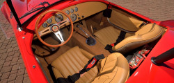 Exemplarul este vopsit într-o nuanță specială, numită Rosso Corsa, primind și un interior din piele maro, o aluzie directă la modelele concurente de la Ferrari, ce erau nuanțate într-o gamă cromatică asemănătoare. Caroseriei i s-a dat formă manual, de către specialiștii AC Cars, fiind realizată din aluminiu. Pe suprafața acesteia sunt aplicate embleme ”FAM” speciale, o abreviere de la “Ferrari’s @ss is Mine” ( nu vom oferi o traducere).