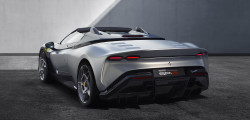 La solicitarea clientului, automobilul are două nuanțe de culoare: Argento Micalizzato și Blue Sandston. Constructorul a optat pentru o estetică originală la nivelul blocurilor optice. Grila frontală este printată 3D, iar stopurile sunt asemănătoare cu cele prezente pe modelul Roma. Iar forma parbrizului și a evacuărilor sunt derivate din 296 GTB, în timp ce jantele din aliaj cu cinci spițe au puncte comune cu F40.
