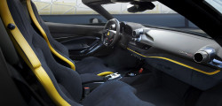 Pe interior, SP-8 are ornamente unicate la selectorul de viteze. De asemenea, atestăm prezența materialului Alcantara, în care este îmbrăcat bordul și scaunele. Tehnic, SP-8 nu se diferențiază de F8 Spider, întrucât utilizează un motor V8 bi-turbo de 3.9 litri volum, care dezvoltă până la 720 CP și un cuplu maxim de 770 Nm.
