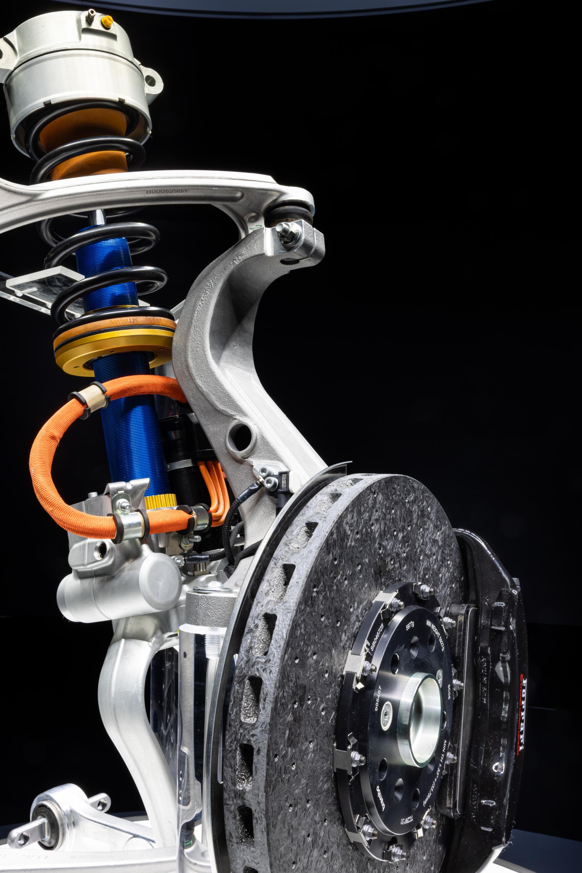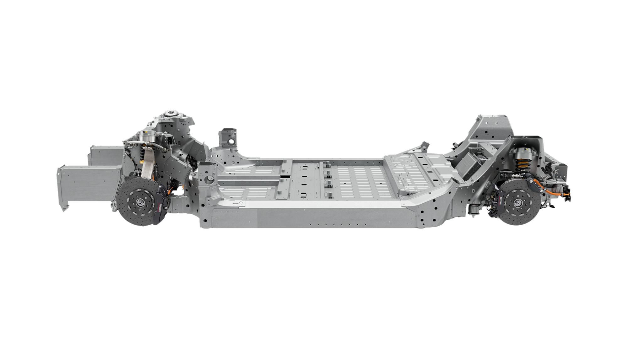 Caroseria este fabricată din aluminiu reciclat în proporție de 75%, iar masa totală a mașinii va fi de aproximativ 2.300 kg, cu o distribuție echilibrată de 47% pe față și 53% pe spate.