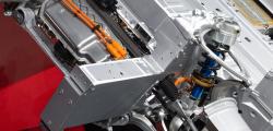 Alimentarea este asigurată de un acumulator de 122 kWh, alcătuit din 210 celule dispuse în 15 module. Bateria promite o autonomie estimată de peste 530 km, iar datorită arhitecturii de 800V, încărcarea rapidă poate atinge 350 kW. Pentru o distribuție optimă a greutății, 85% din celulele bateriei sunt amplasate jos, între cele două punți, contribuind la un centru de greutate extrem de coborât.