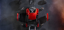 Pe lângă asta, motorul a fost repoziționat, acest lucru fiind argumentat cu coborârea centrului de greutate. Producătorul susține că resursele vor fi gestionate de o transmisie secvențială cu șase trepte.