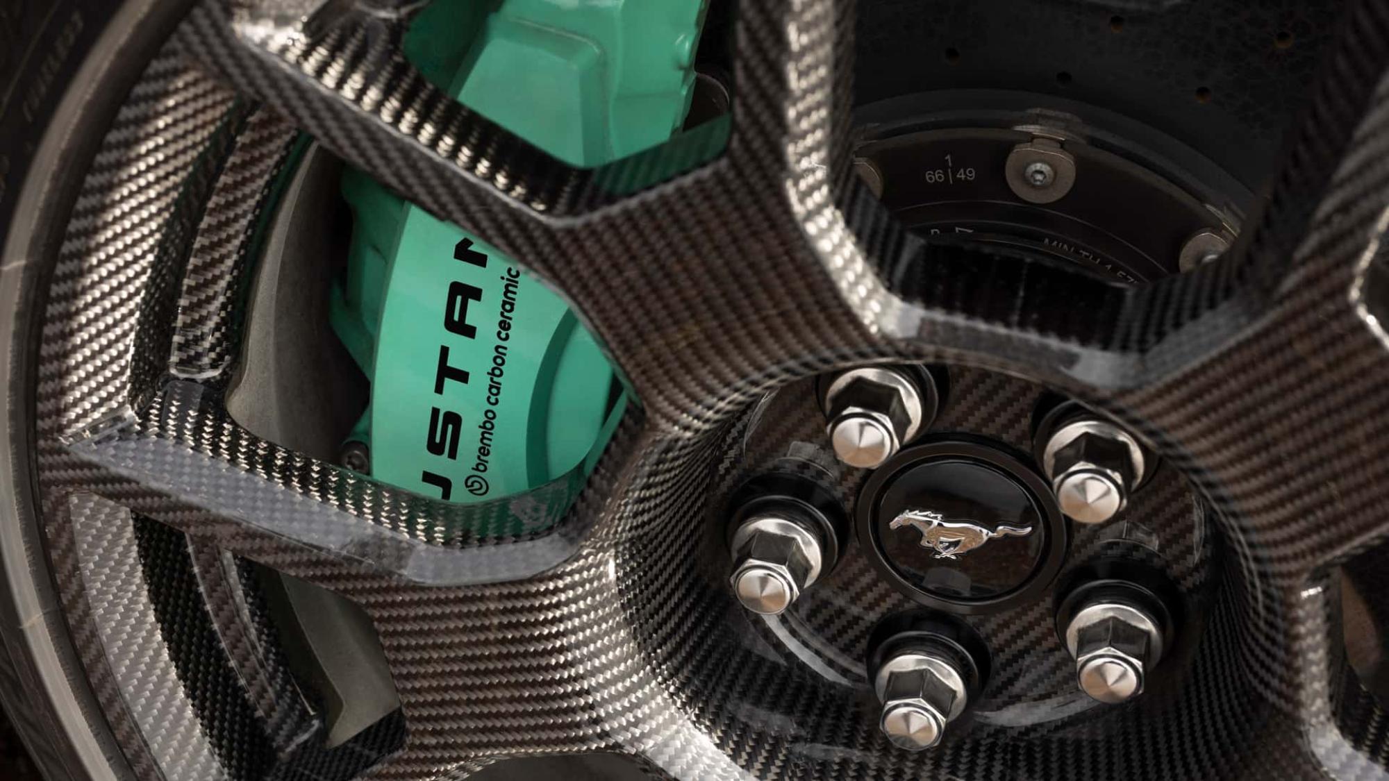 Tot în standard sunt incluse etrierele Brembo cu 6 pistoane pe față și 4 pistoane pe spate. Ce ține de anvelope, Ford a echipat acest model cu Pirelli P Zero R, care sunt montate pe jante de aluminiu de 20 de inch. Dacă tot am spus de frâne, acestea au un flux de aer îmbunătățit și o răcire mai eficientă, dacă să comparăm cu Dark Horse-ul standard.