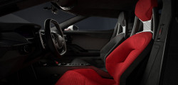 Pe lângă toate, sistemul de evacuare al modelului realizat prin procesul de printare 3D. Pe interior, constructorul a optat pentru interior îmbrăcat în piele Alcantara și au fost introduse o serie de accesorii din fibră de carbon și o plăcuță specială amplasată pe planșa de bord în dreptul pasagerului din dreapta.