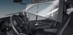 Deocamdată, aceste protecții transparente sunt disponibile doar pe modele ca Transit și Tourneo. Odată instalate, panourile ar trebui să devină o barieră în fața virusului și cel puțin psihologic, operatorii (cei aflați la volan) se vor simți mai mult în siguranță. Ca și idee, nu e cu nimic mai deosebită decât ce ați văzut până acum instalate în magazine, la casierii sau farmacii, doar că au fost adaptate la necesitățile automobiliștilor.