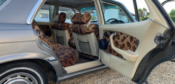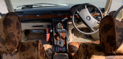 Acest S-Class W116 se prezintă în versiunea 450 SEL, echipat cu un motor V8 de 4.5 litri volum, aspirat natural. La interior vedem o tapițerie poate unică în lume, făcută la comandă și inspirată de pielea vacii, unde se adaugă sistemul audio premium, menționat mai sus.