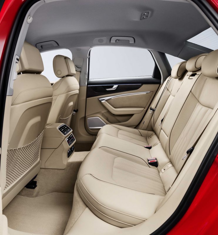Pasagerii din spate vor primi în primul rând mai mult loc pentru picioare în comparație cu cei ce se vor așeza în A7, ba mai mult, aici interiorul este și mai înalt astfel încât pasagerii de statură mare nu ar trebui să întâlnească careva deficiențe sau incomodități. Despre aceste lucruril vin să ne spună cifrele dimensiunilor interiorului. Așadar ampatamentul atât a modelului A7 cât și al lui A6 au crescut cu 12 milimetri, însă dacă distanța dintre scaunele din spate și cele din față la Sportback s-a mărit cu doi centimetri, la sedan sau adăugat trei centimetri. La fel salonul a devenit mai lat la nivelul umerilor pasagerilor cu circa șapte milimetri, iar distanța de la creștetul pasagerilor până la acoperiș s-a mărit cu opt milimetri din față și 11 mm din spate.