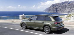 Noul Audi Q7 facelift debutează într-o gamă extinsă de culori, incluzând albastru Ascari, auriu Sakhir și roșu Chilli. Jantele de 19 inch sunt incluse în dotarea standard, însă sunt disponibile și variante noi cu designuri atractive, cu dimensiuni cuprinse între 20 și 22 de inch.