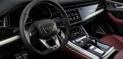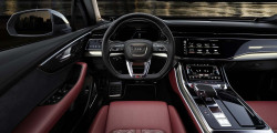 Pe interior, modelul primește cusături contrastante în mod standard și oferă până la 9 ornamente decorative opționale. O altă noutate este suportul pentru aplicații terțe în sistemul multimedia al lui Audi Q7, inclusiv platforme precum Spotify. De asemenea, pe ecranul digital de bord vor fi afișate acum noi avertismente ale sistemelor avansate de siguranță.