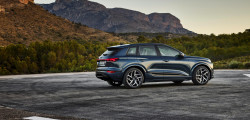 Versiunea SQ6 e-tron se va remarca prin designul exterior sportiv, accentuat de detalii argintii integrate în spoilerele față și spate, jante de 20 inch, etriere negre și embleme specifice modelelor S.