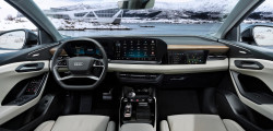 Interiorul noului Q6 e-tron prezintă un design nou, cu un ansamblu curbat cu tehnologie OLED care integrează instrumentarul de bord digital de 11.9 inch și ecranul central de 14.5 inch al sistemului multimedia, ce rulează un sistem de operare bazat pe Android Automotive.