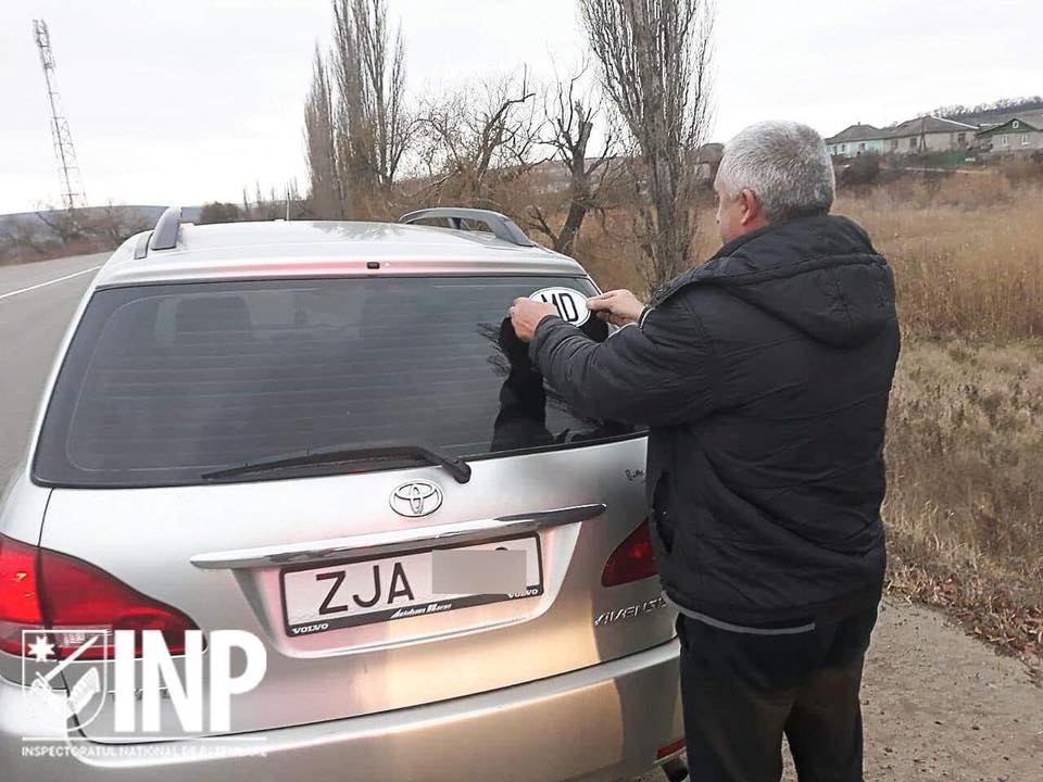 (FOTO) INP împarte abțibilduri cu inscripția ”MD” în rândurile șoferilor cu numere neutre!