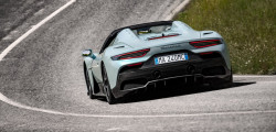 Cum s-a și presupus, decapotabila împarte același motor cu versiunea coupe. Este vorba de motorul V6 Nettuno, de 3.0 litri volum. Cel din urmp dezvoltă 630 CP și 730 Nm. Masa totală a mașinii consituie 1.540 de kilograme, cu 65 de kilograme mai mult decât varianta coupe. Datorită acestor cifre, mașina atinge 100 km/h în doar 3 secunde! Între timp, viteza maximă a fost limitată la 320 km/h.