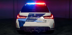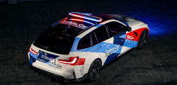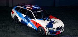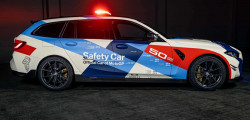 Noul break de performanță al germanilor devine tot mai popular. La prezentarea oficială, nemții au dezvăluit două mașini simultan, una standartă și cea de-a doua mașină va fi utilizată drept Safety Car în MotoGP. Cu siguranță că acest automobil are și o grafică specifică. Pe lângă asta, M3 Touring Safety Car vine echipat cu o serie de elemente din catalogul M Performance. Inclusiv cu acel sistem de evacuare montat central, pe care l-am văzut și la M3/M4.
