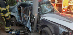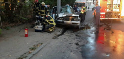 (FOTO) O tânără a avut nevoie de descarcerare după ce BMW-ul în care se afla a derapat într-un stâlp