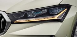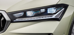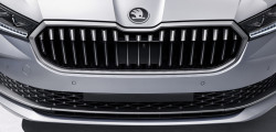 Desigur că noua generație se aliniază noului limbaj de design Modern Solid. Respectiv, avem o grilă frontală cu finisaj Unique Dark Chrome. În echiparea standard, noul Superb vine echipat cu faruri LED, dar clienții au la dispoziție și a doua generație a farurilor LED Matrix, care sunt disponibile opțional. Potrivit oficialilor, acestea oferă cu 40% mai multă lumină decât vechea iterație și integrează 36 de segmente individuale.