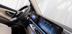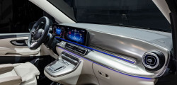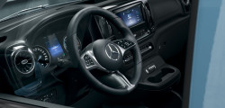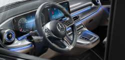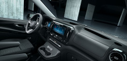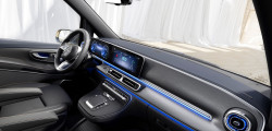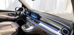 Să trecem la interior! Acum habitaclul este mult mai digitalizat. De exemplu modelele V-Class și V-Class Marco Polo primesc câte două ecrane cu diagonală de 12.3 inch pentru sistemul multimedia și instrumentarul digital. Între timp, Vito și eVito primesc un ecran central de 10.25 de inch, alături de un instrumentar nou care integrează un display color de 5.5 inch.