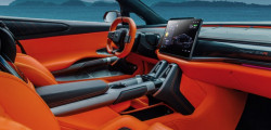 Caroseria automobilului este confecționată totalmente din fibră de carbon, iar ușile se deschid vertical. Modelul are în dotarea sa un eleron activ, dar și alte elemente de design care îți amintesc de supercarurile europene. Pe interior regăsim scaune sport, care sunt încălzite și ventilate, un display central de 14.6 inch și un instrumentar de bord digital, cu ecran de 8.9 inch.
