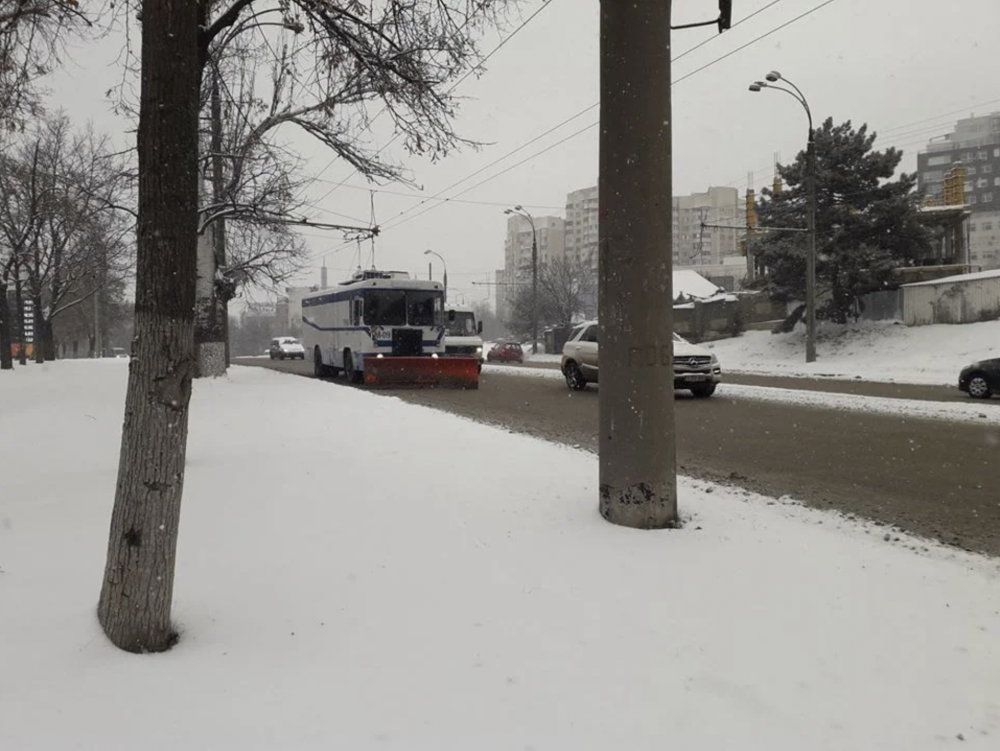 "El merge, spre exemplu, de la stația Dumeniuc, stația terminus, deszăpezește, după care se deplasează pe șoseaua Hîncești și tot acest traseu parcurs, el merge cu lama jos. De asemenea, el curăță sub rețeaua de contact pentru troleibuze", a explicat directorul RTEC.