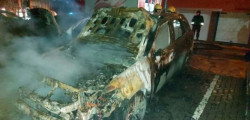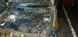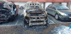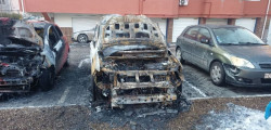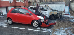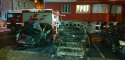 (FOTO) Trei mașini au ars în curtea unui bloc de locuit din capitală. Unul dintre vehicule a fost distrus totalmente