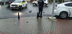 (FOTO) Un vehicul al Poliției și o Toyota Prius s-au tamponat violent pe bd. Ștefan cel Mare și Sfânt