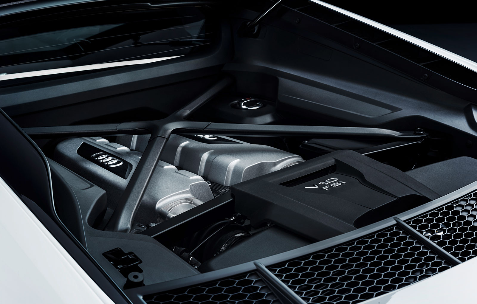 R8-ul utilizează serviciile aceluiaşi propulsor V10 cu capacitatea cilndrică de 5.2 litri, care dezvoltă 540 CP şi 540 Nm. Motorul este cuplat la cutia cu şapte trepte S tronic. Versiunea Coupe accelerează de la 0-100 km/h în 3.7 secunde, iar Spyder-ul are nevoie de 3.8 secunde.