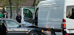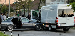 Haz de necaz: Un BMW Seria 7 s-a ciocnit violent cu un Sprinter cu numerele BMV 007