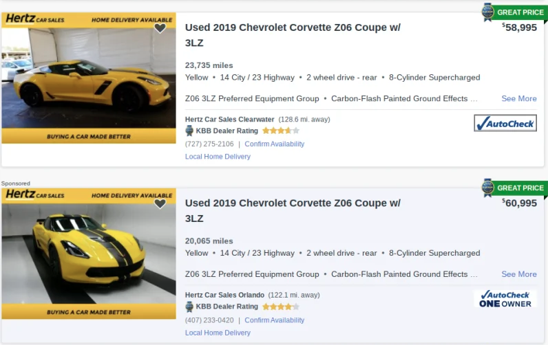 Hertz a scos la vânzare lotul de Chevrolet Corvette Z06, la un preț redus!