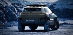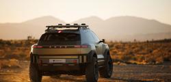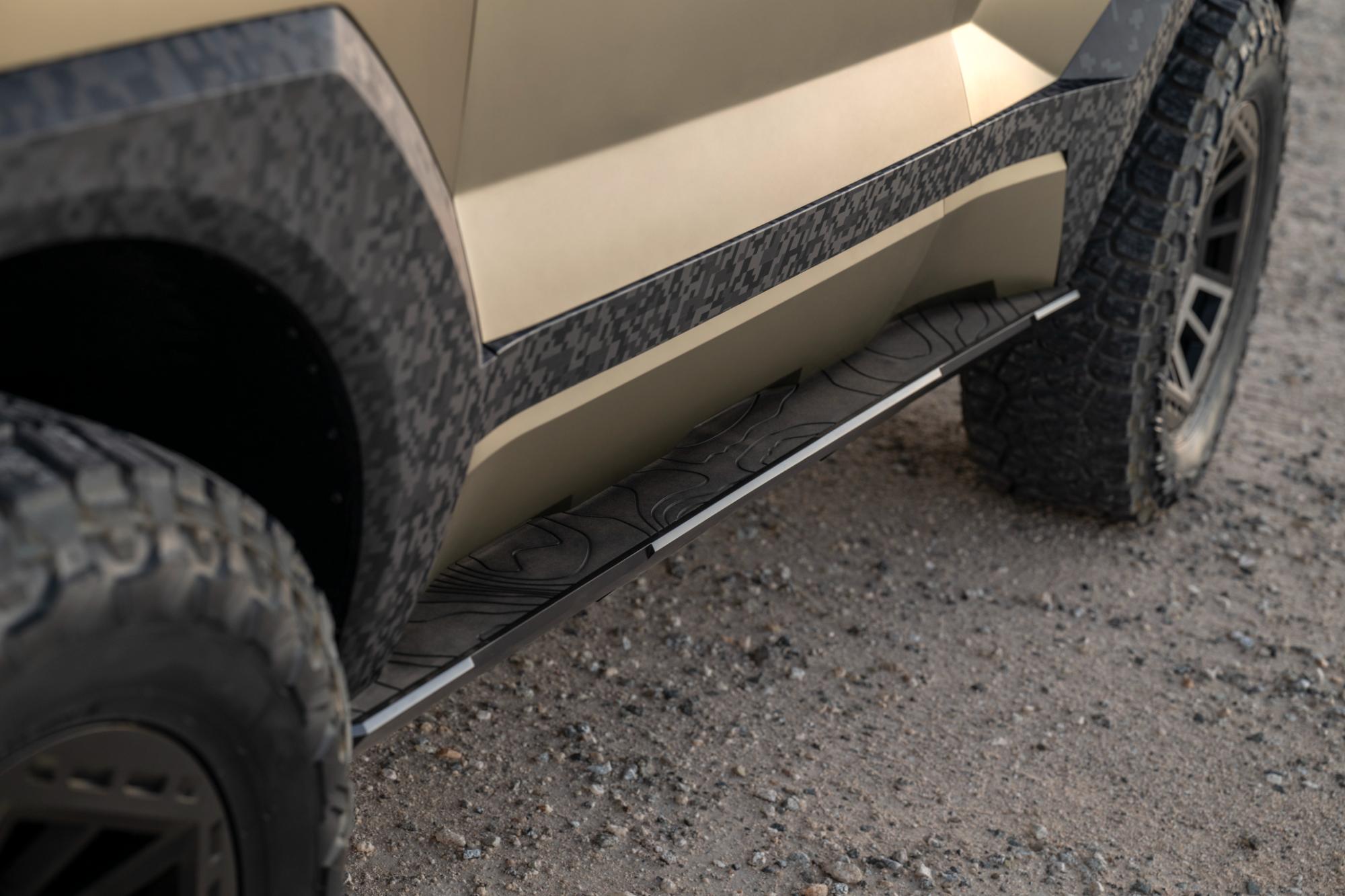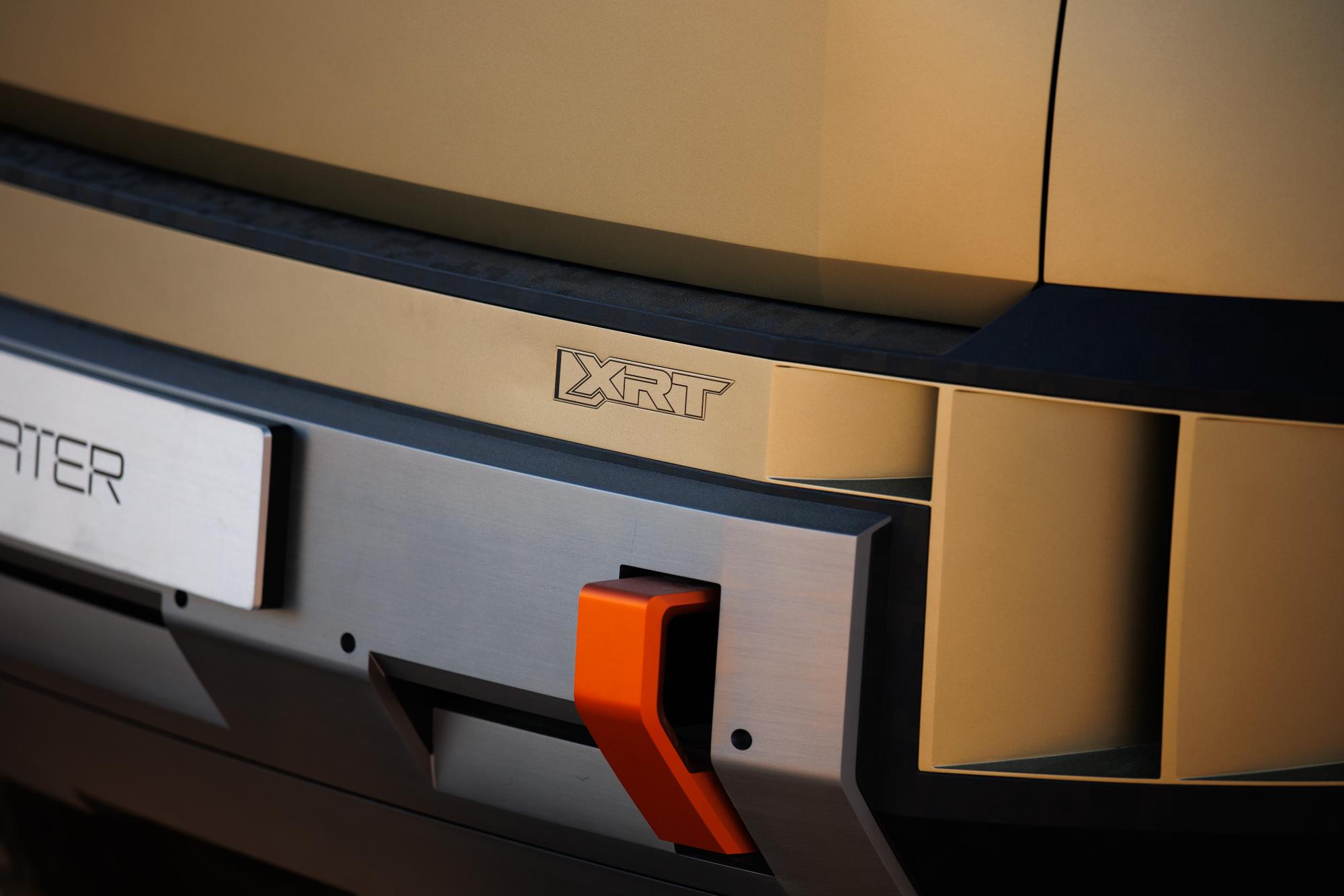Protecții suplimentare sunt prezente și în zona pasajelor roților, vopsite într-o nuanță contrastantă față de restul caroseriei. Pe plafon, Crater este echipat cu patru proiectoare LED și o bară utilitară destinată transportului de accesorii. Partea din spate păstrează tema de design frontală, cu stopuri pixelate, prize de aer sculptate și un scut dotat cu două puncte de tractare.
