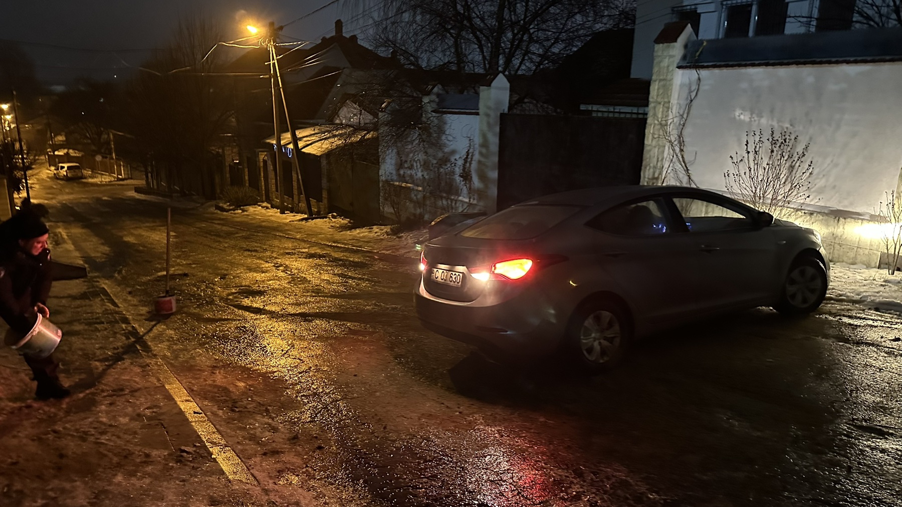 O situație similară a fost semnalată pe strada Trușeni din municipiul Chișinău, unde un automobil a rămas imobilizat pe un sector de drum acoperit cu ghețuș.