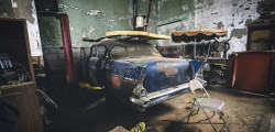 Fotograful american Brian Neal a descoperit o școală abandonată în statul american New York, în care, spre surprinderea acestuia se aflau mai multe automobile rare acoperite cu un strat gros de praf și afectate de rugină.