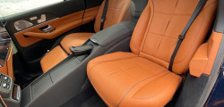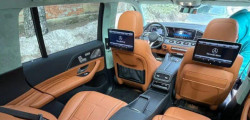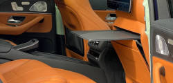 Tunerii au instalat barele de protecție, grila radiatorului și roțile cu design special, toate Maybach, comandate de la reprezentanța oficială. La interiorul replicii găsim aceleași scaune din spate separate cu suport retractabil pentru picioare și funcție de masaj, între care există o consolă centrală cu suporturi pentru pahare. În plus, specialiștii au dotat SUV-ul cu un wireless charger și emse pliabile originale de pe Maybach GLS.