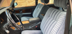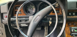 Sedanul a păstrat toate dotările cu care el a ieșit de pe linia de asamblare. Până și spălătoarele pentru faruri sunt funcționale, iar interiorul sur, din velur, și detaliile din lemn de asemenea demonstrează autenticitate și bucură ochii potențialilor cumpărători.