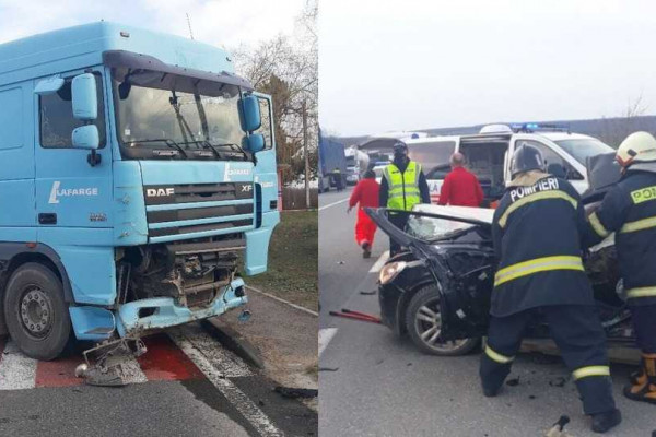 Încă un accident tragic, între un automobil și un camion, în această seară! Șoferul unui Volvo a murit