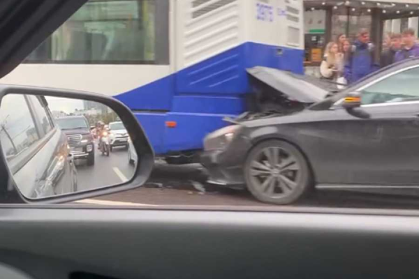 Accident cu implicarea unui troleibuz, care staționa regulamentar. Șoferul unui Mercedes se face vinovat