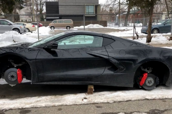 Noul Chevrolet Corvette încă nu a început să fie livrat clienților, însă hoții deja au reușit să-i fure roțile!