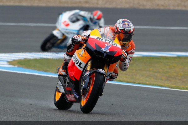 Etapa de la Jerez a început cum nu se putea mai bine pentru fanii spanioli: piloţii Jorge Lorenzo (Yamaha) şi Dani Pedrosa (Honda) plecând de pe primele două poziţii ale grilei de start. Pilotul Repsol Honda, Dani Pedrosa, a intrat la conducerea cursei rapid după ce şi-a depăşit compatriotul de la Yamaha, Jorge Lorenzo. Campionul de anul trecut, Casey Stoner a plecat de pe poziţia cu numărul cinci dar se apropia rapid de cei do spanioli. Nu a durat mult şi australianul (Stoner) a preluat conducerea cursei stabilind timpi din ce în ce mai buni. Lorenzo l-a urmat pe tot parcursul cursei dar nu a reuşit să îl depăşească, Stoner terminând etapa din Spania pe primul loc.