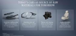 Reprezentanții Mercedes-Benz susțin că, în ultimii doi ani, au fost identificate aproximativ 40 de materiale și componente noi, concepute pentru a fi mai prietenoase cu mediul. Acestea vor fi integrate treptat în modelele de serie, odată cu lansările viitoare.