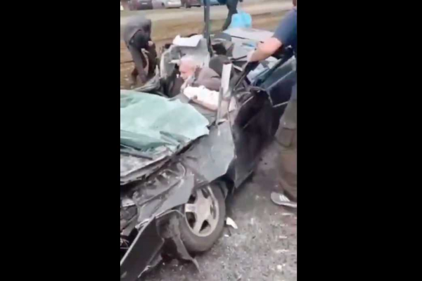 Mai jos vedeți modentul șocant și inuman în care tancul rusesc merge peste mașină și cel în care oameni ajută bărbatul să iasă din mașină.