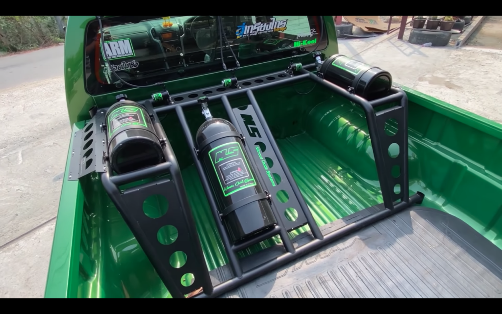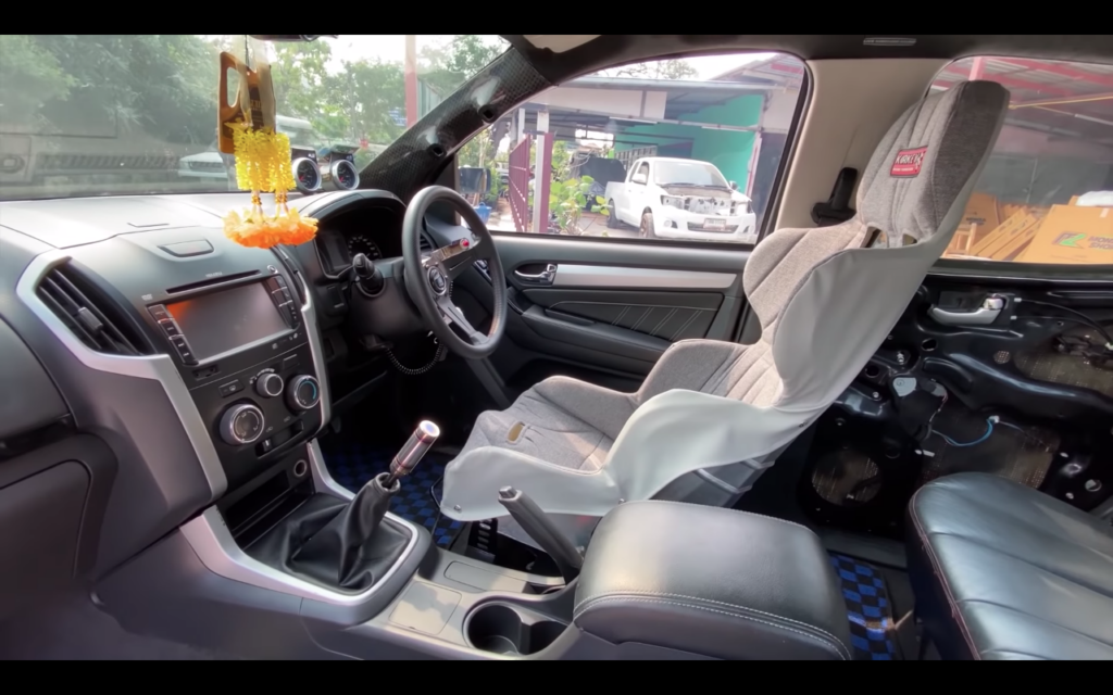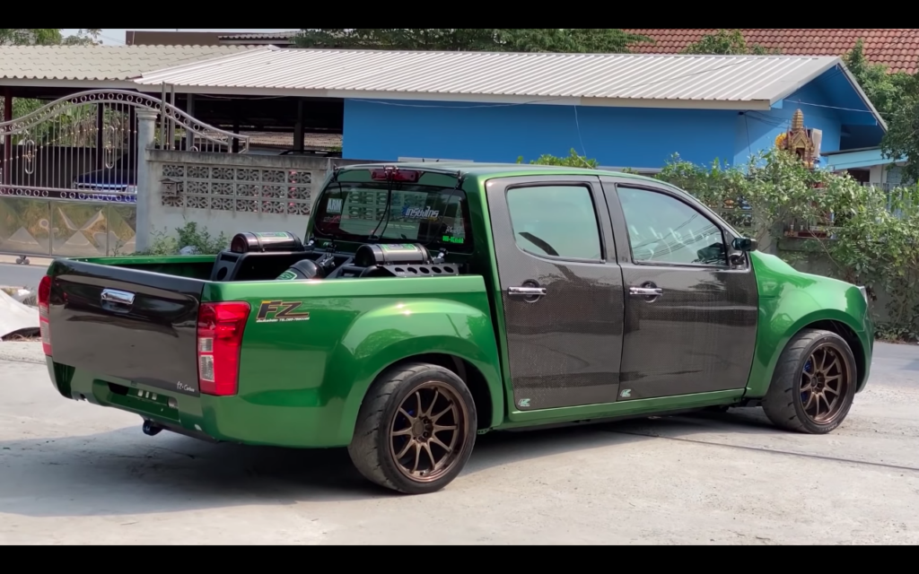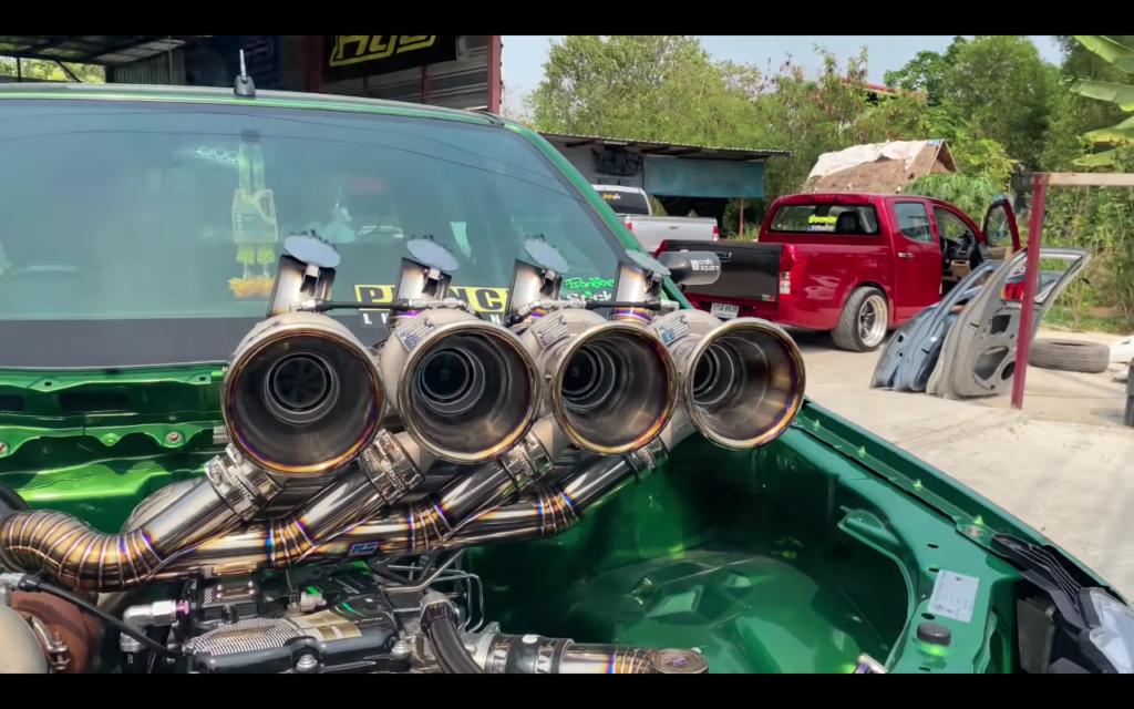 Propulsorul de 3.0 litri volum, turbo-diesel, are acum cu 4 turbine mai mult decât a prevăzut uzina. Din păcate, autorul materialului video nu știe prea bine să vorbească ttailandeza, iar tunerii nu o duc nici ei mai bine cu engleza, iată de ce nu vă vom putea comunica multe detalii tehnice sau cifre legate de cai putere.
