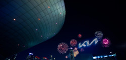 Noul logo a fost dezvăluit cu stil în timpul unui eveniment transmis în direct din Incheon, Coreea de Sud, marcat de un spectacol pirotehnic spectaculos. În timpul prezentării, 303 pirodrone au lansat sute de artificii pentru a sărbători noua eră Kia, stabilind în același timp un nou record mondial Guinness pentru „Cele mai multe vehicule aeriene nepilotate (UAV) care lansează artificii simultan”.